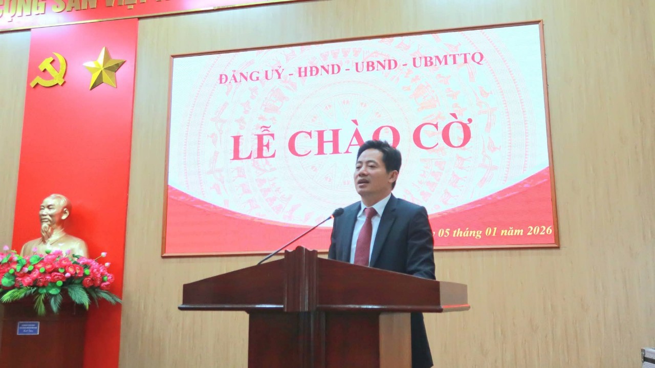 Phát biểu tại buổi lễ, đồng chí Dương Văn Tuấn đã ghi nhận, đánh giá những kết quả nổi bật địa phương đã đạt được trong thời gian qua; đồng thời quán triệt, triển khai các nhiệm vụ trọng tâm năm 2026. Đồng chí yêu cầu tiếp tục nâng cao tinh thần trách nhiệm, kỷ luật, kỷ cương hành chính; phát huy vai trò tham mưu, điều hành của chính quyền cơ sở, góp phần thực hiện hiệu quả nhiệm vụ quản lý nhà nước, phát triển kinh tế – xã hội, bảo đảm quốc phòng – an ninh trên địa bàn.