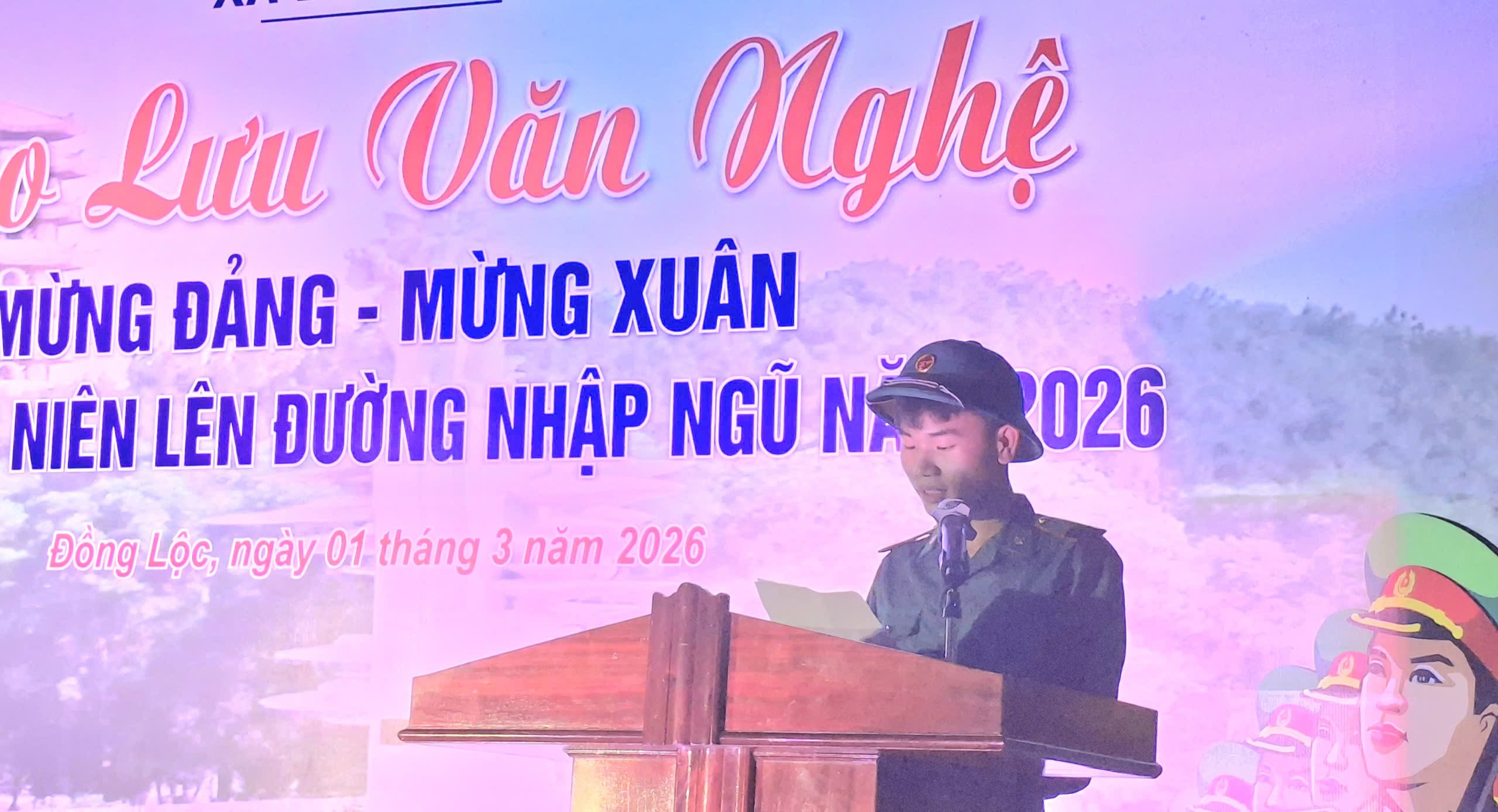 Trong không khí vui tươi, phấn khởi, các đại biểu và tân binh được thưởng thức các tiết mục văn nghệ ca ngợi Đảng, Bác Hồ kính yêu, tình yêu quê hương, đất nước và truyền thống anh hùng của quân đội; ca ngợi hình ảnh người chiến sĩ trên mặt trận xây dựng và bảo vệ Tổ quốc.