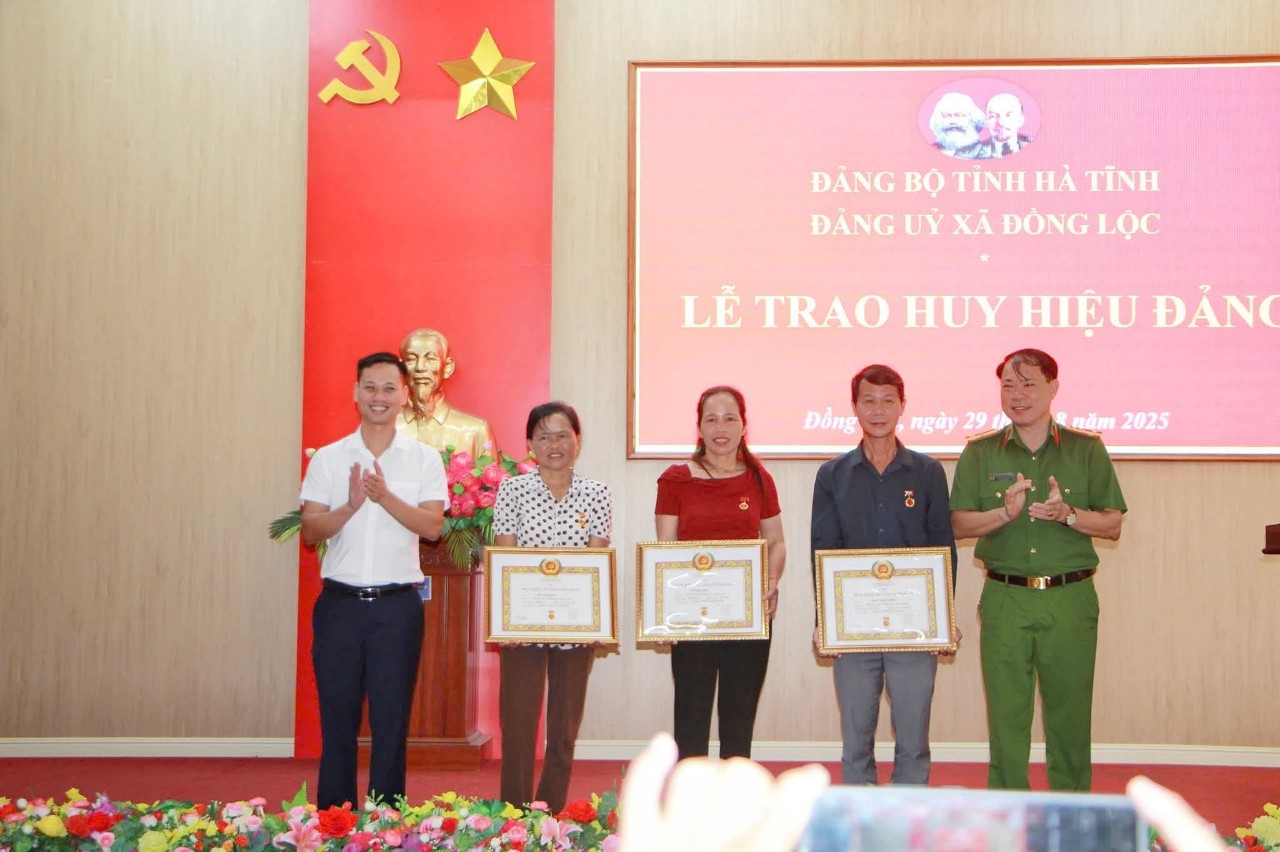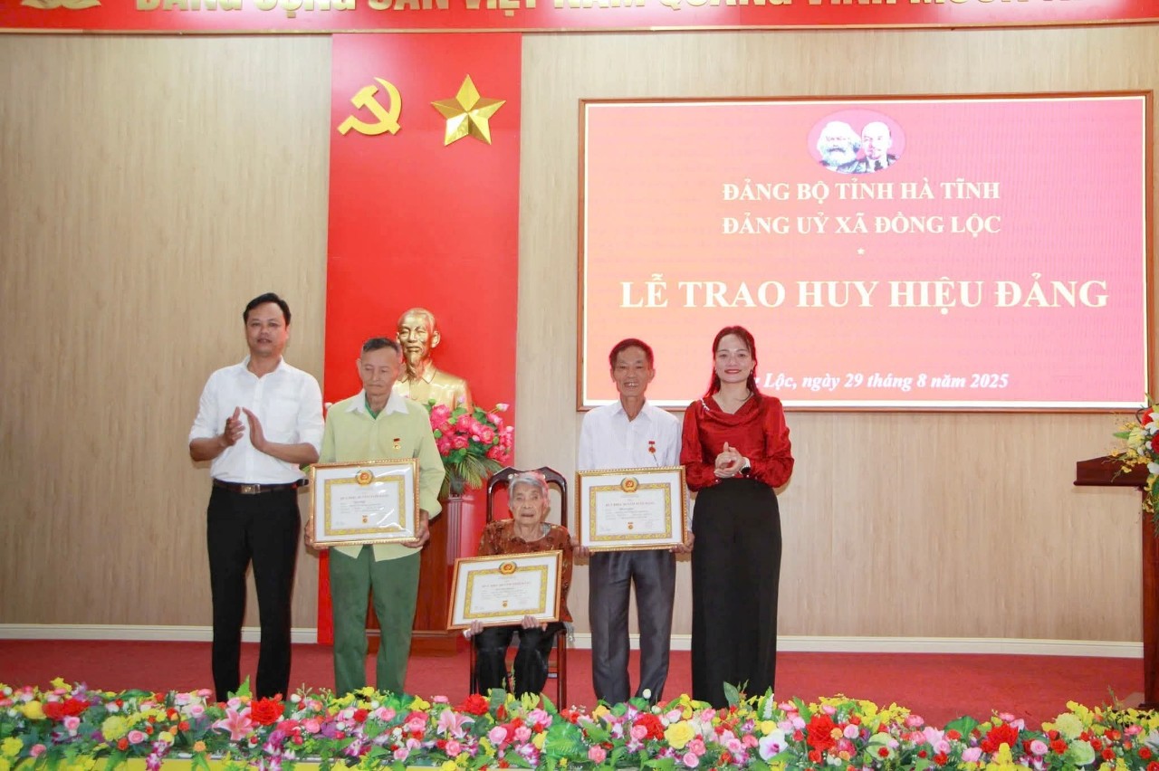 Đợt 2/9/2025, toàn Đảng bộ xã Đồng Lộc có 26 đảng viên được vinh dự đón nhận Huy hiệu của Đảng; trong đó có 4 đảng viên 60 năm tuổi Đảng; 3 đảng viên 55 năm tuổi Đảng; 1 đảng viên 50 năm tuổi Đảng; 18 đảng viên 45 năm, 40 năm và 30 năm tuổi Đảng.