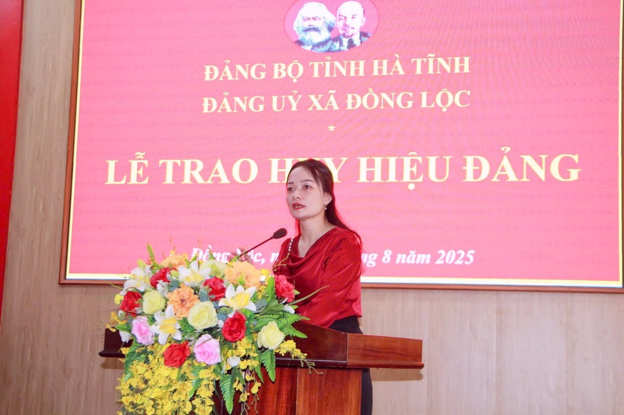 Việc trao tặng huy hiệu cao quý của Đảng là niềm vinh dự, tự hào của mỗi đảng viên và là niềm vui chung của Đảng bộ xã Đồng Lộc; thể hiện sự ghi nhận, động viên, tôn vinh những đảng viên đã có nhiều cống hiến cho Đảng; luôn giữ gìn phẩm chất, đạo đức, lối sống trong sáng, đóng góp quan trọng vào sự nghiệp cách mạng của đất nước và địa phương suốt thời gian qua.