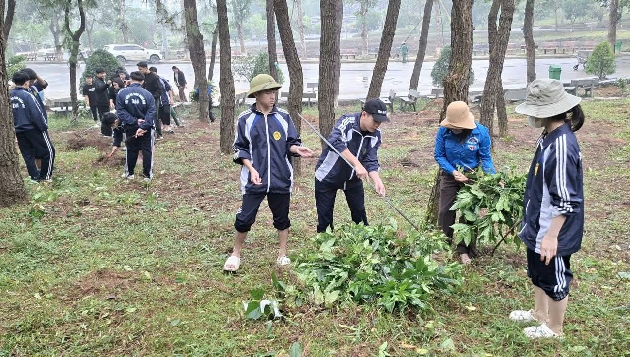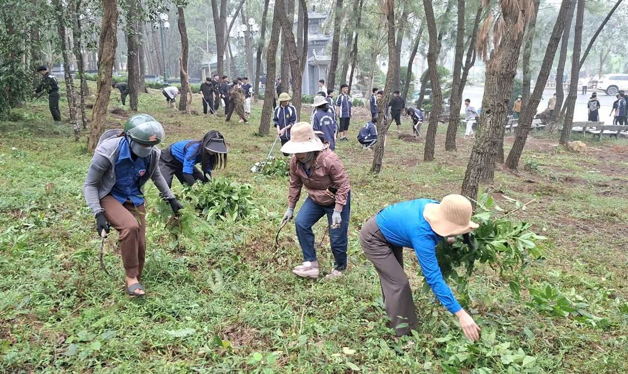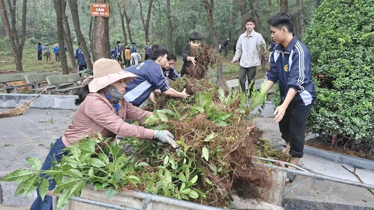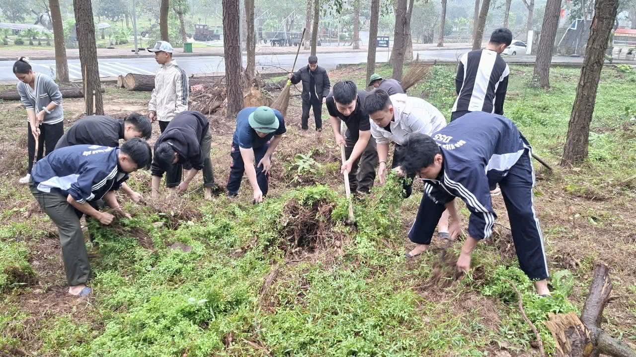 Các học viên tập trung thu gom rác thải, phát quang, làm sạch khuôn viên Khu di tích và các tuyến đường dẫn vào di tích; chỉnh trang cảnh quan nhằm tạo môi trường xanh – sạch – trang nghiêm phục vụ nhân dân và du khách về nguồn.