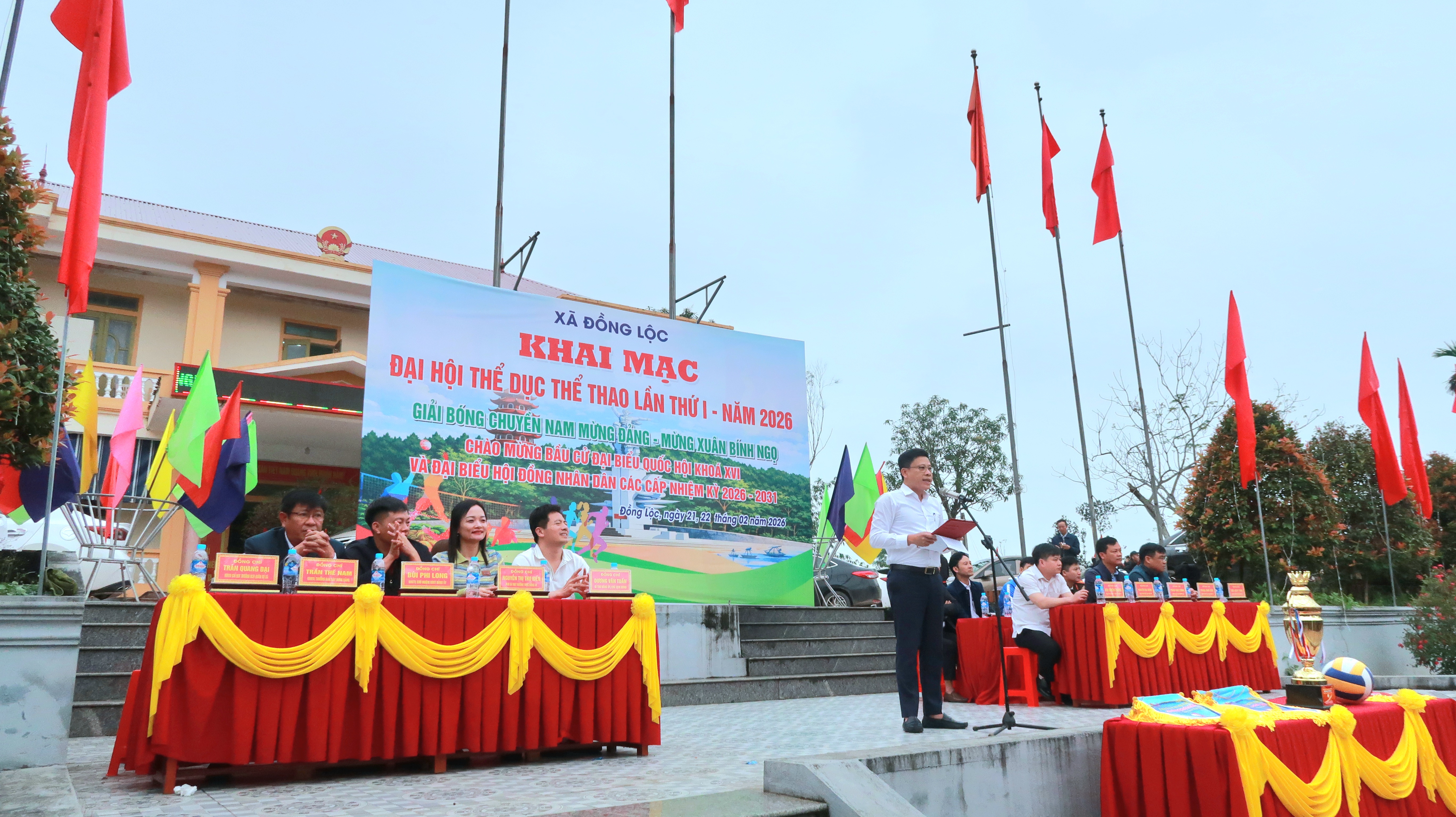 Phát biểu tại lễ khai mạc, đồng chí Nguyễn Đại Đồng, Phó Chủ tịch UBND xã - Trưởng Ban Tổ chức giải nhấn mạnh, giải bóng chuyền là hoạt động thiết thực nhằm đẩy mạnh phong trào rèn luyện thể dục thể thao trong Nhân dân, tạo sân chơi lành mạnh, tăng cường tinh thần đoàn kết, giao lưu giữa các thôn, đơn vị; đồng thời mong muốn các đội thi đấu trung thực, cao thượng, cống hiến cho khán giả những trận đấu hấp dẫn.
