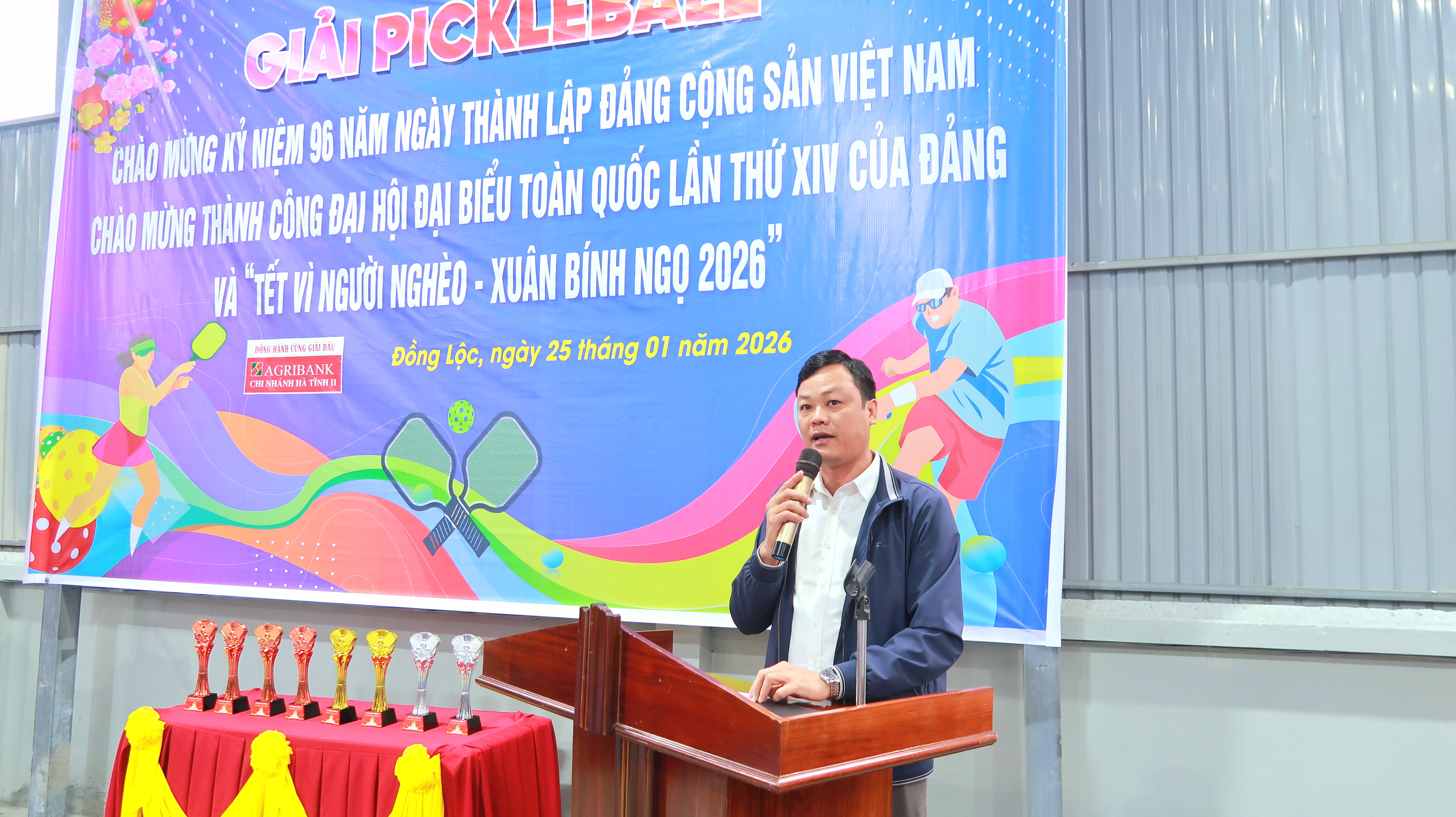 Phát biểu khai mạc, đồng chí Phan Văn Lương – Chủ tịch Ủy ban MTTQ xã, Trưởng Ban Tổ chức giải nhấn mạnh: Giải Pickleball không chỉ là sân chơi thể thao rèn luyện sức khỏe, tăng cường giao lưu, mà còn là nhịp cầu nhân ái, lan tỏa tinh thần “tương thân tương ái”, góp phần mang đến một cái Tết ấm áp, đủ đầy hơn cho người nghèo.