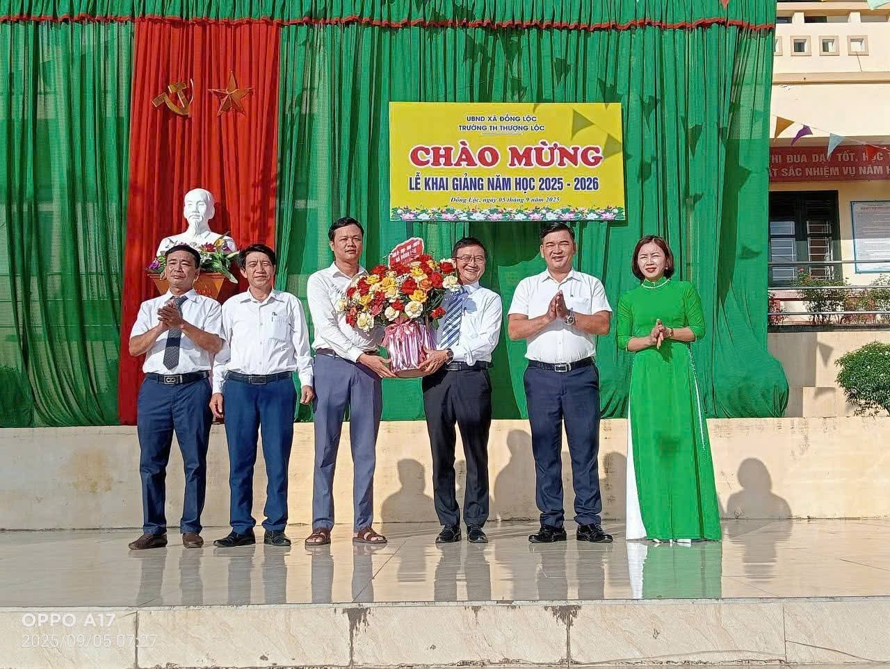 Trong dịp này, tại trường THPT Đồng Lộc có đồng chí Hà Văn Trọng, Ủy viên BTV Tỉnh ủy, Chủ nhiệm Ủy ban Kiểm tra Tỉnh ủy; đồng chí Dương Văn Tuấn, Bí thư Đảng uỷ; đồng chí Nguyễn Thị Thu Hiền, Phó bí thư TT Đảng dự lễ khai giảng trực tuyến và chúc mừng nhà trường.