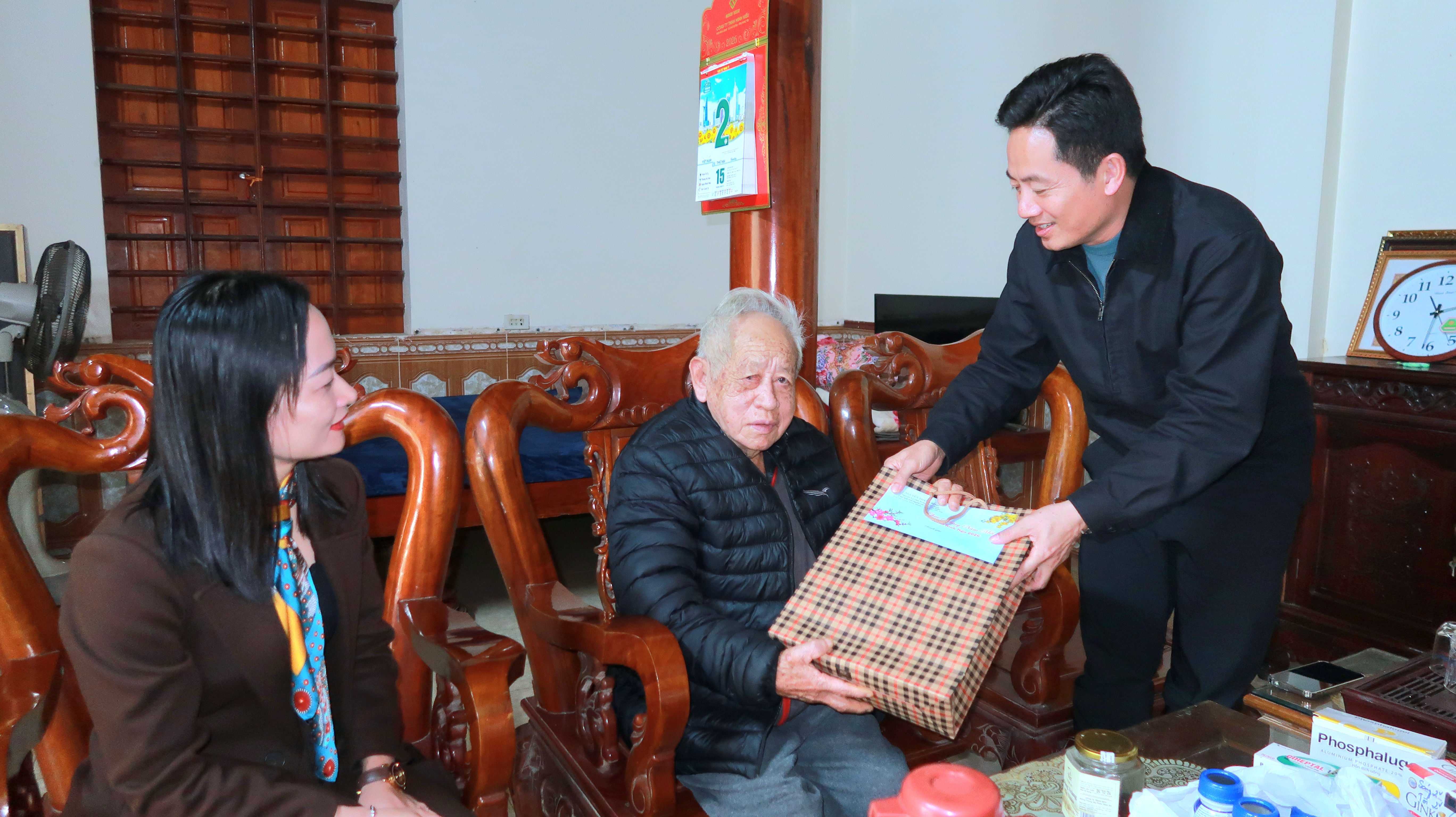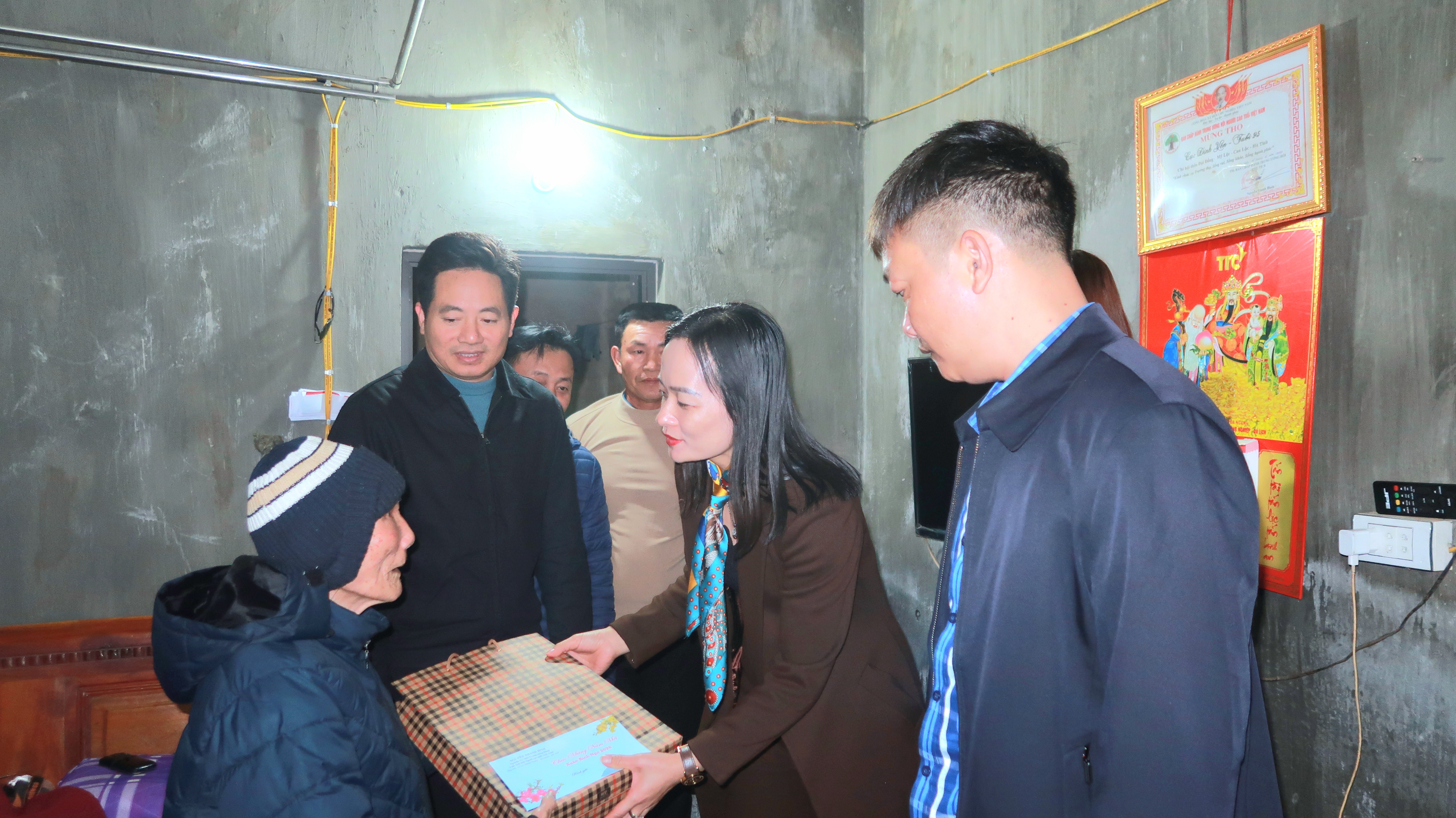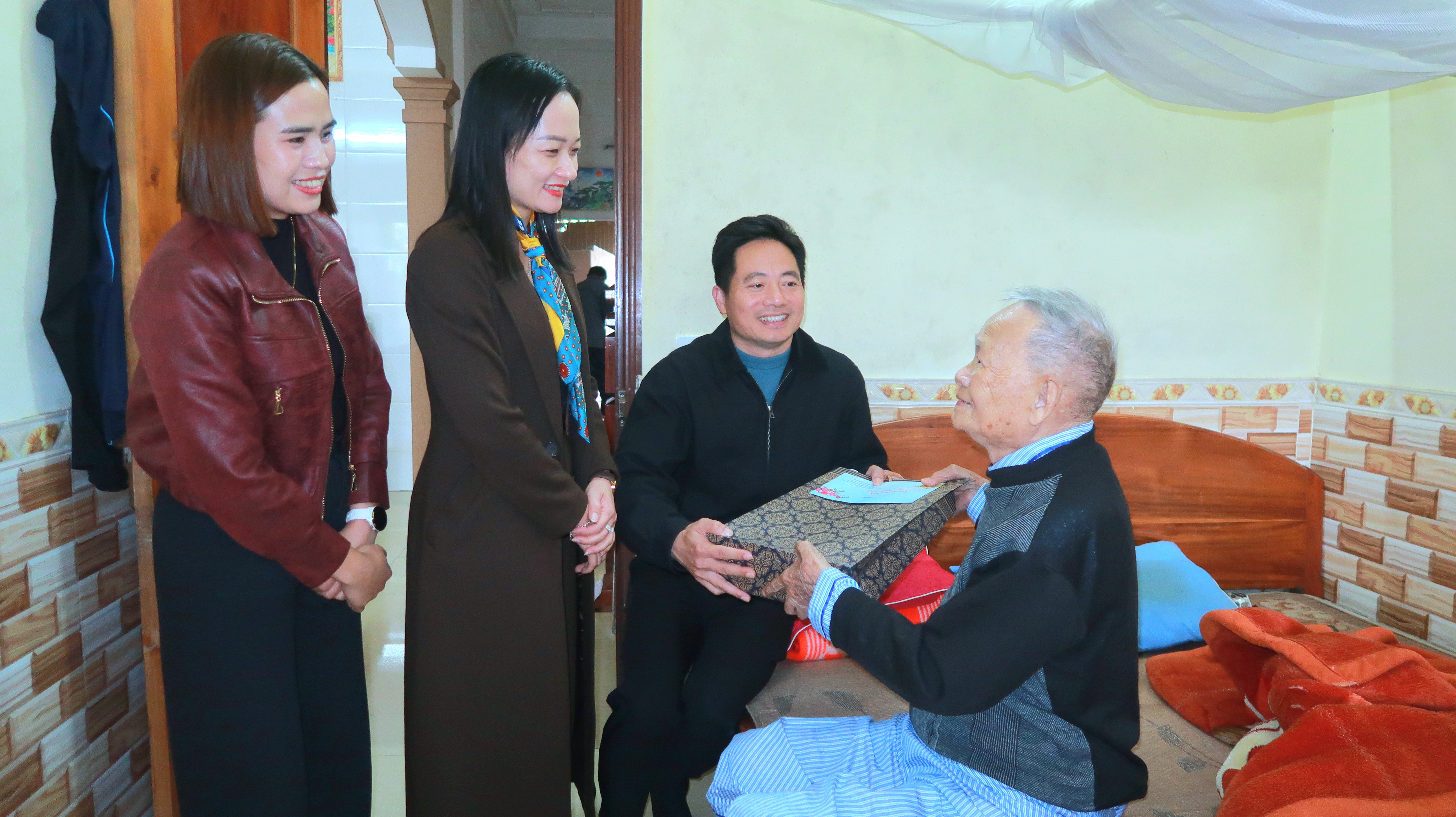 Tại các gia đình đến thăm, đoàn đã trao quà, gửi lời chúc mừng năm mới tới các đồng chí nguyên Ủy viên Ban Thường vụ Đảng ủy xã và thân nhân.