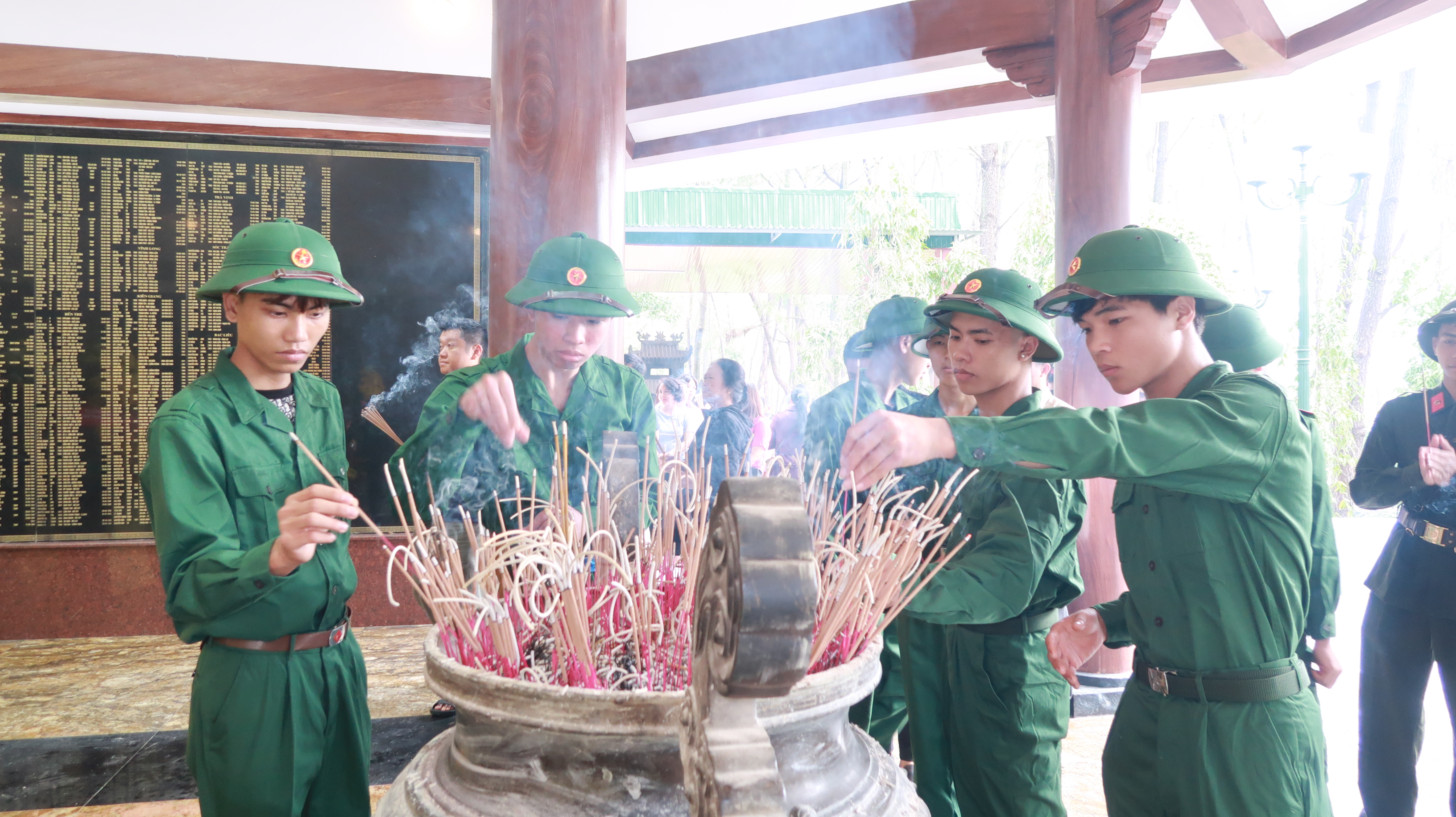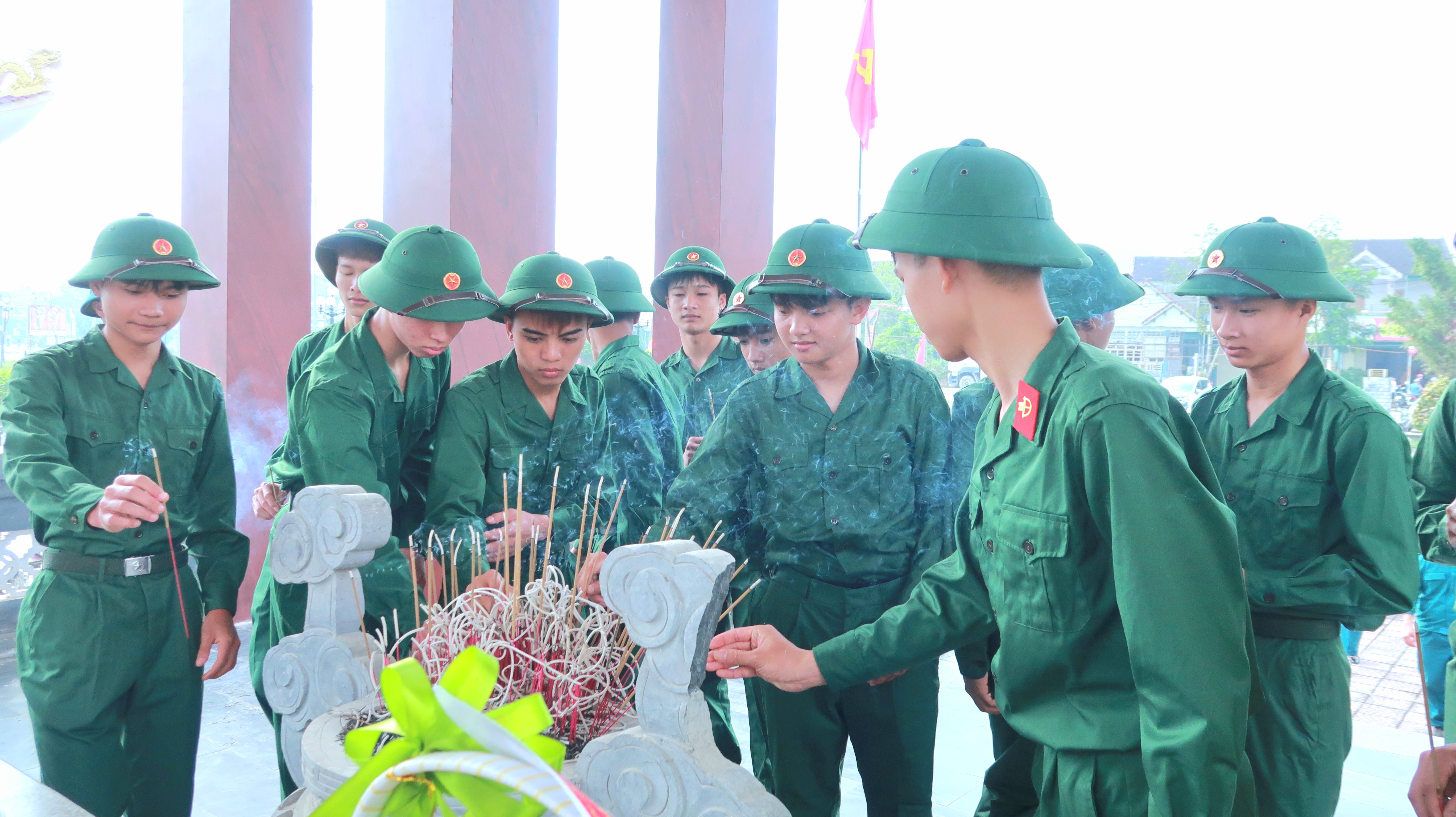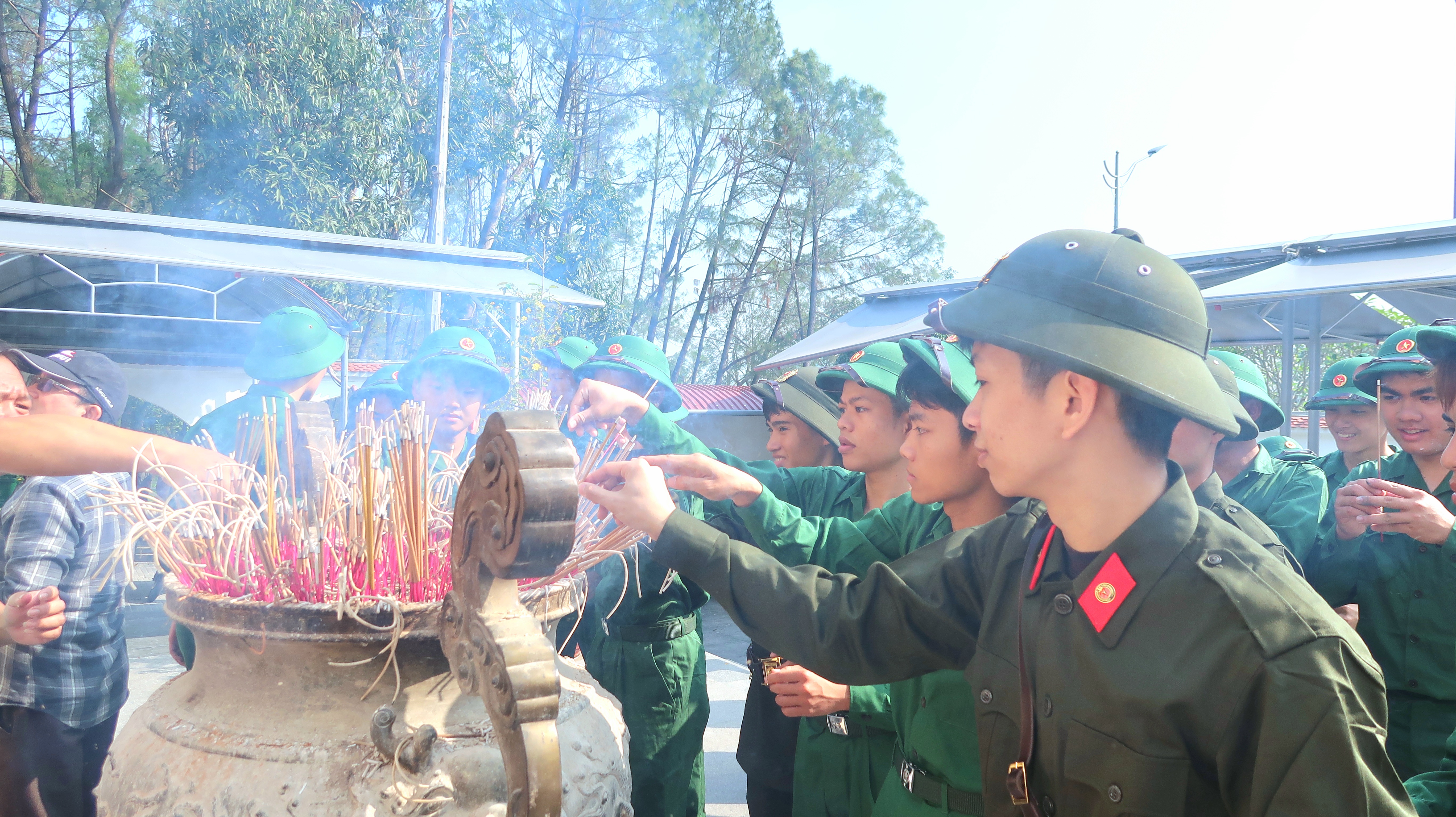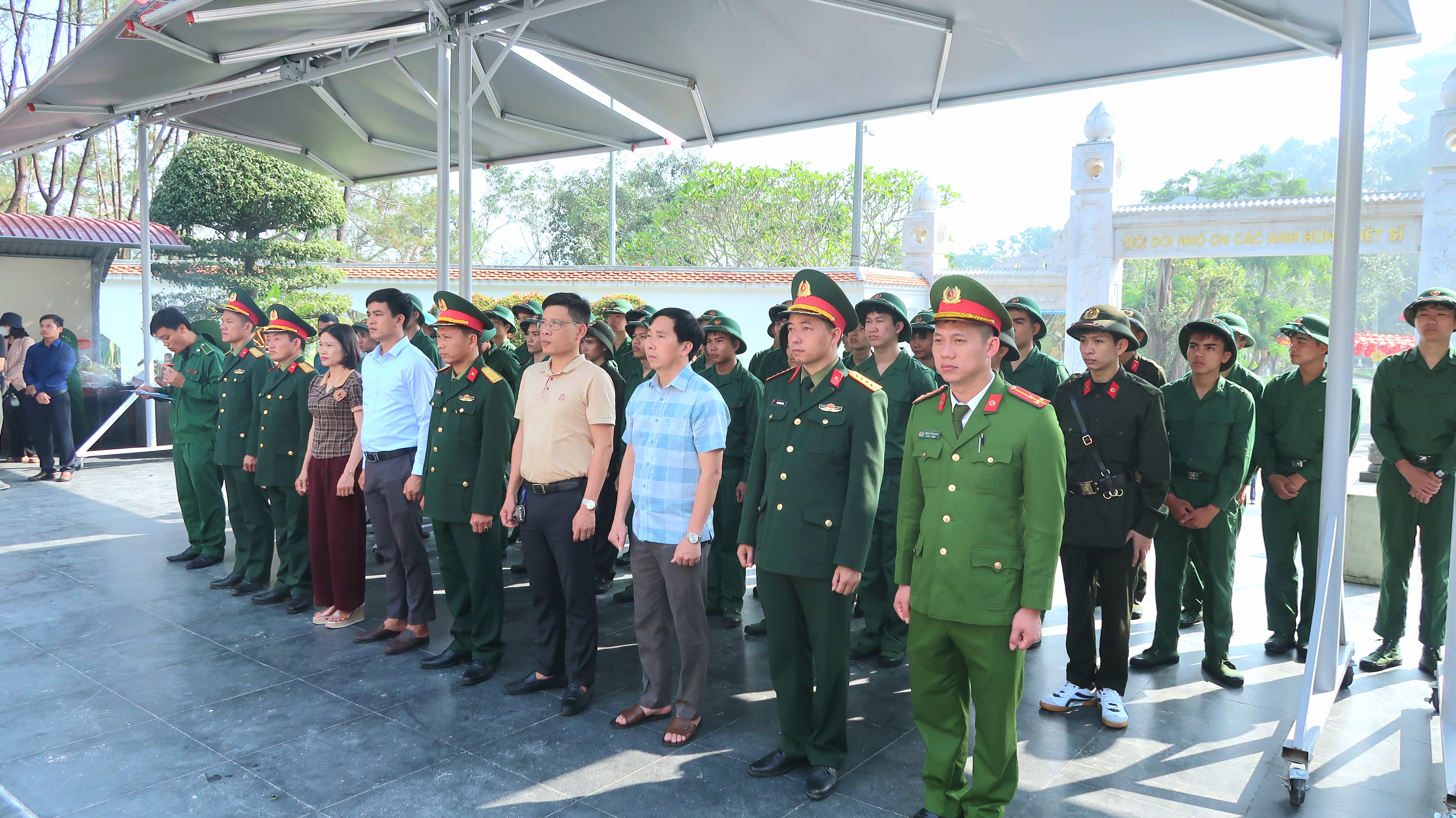 Trong không khí trang nghiêm, các đại biểu cùng các thanh niên chuẩn bị lên đường làm nhiệm vụ bảo vệ Tổ quốc đã dâng hoa, dâng hương và bày tỏ lòng tưởng nhớ, tri ân sâu sắc đối với các thế hệ cha anh đã không tiếc máu xương vì sự nghiệp giải phóng dân tộc.