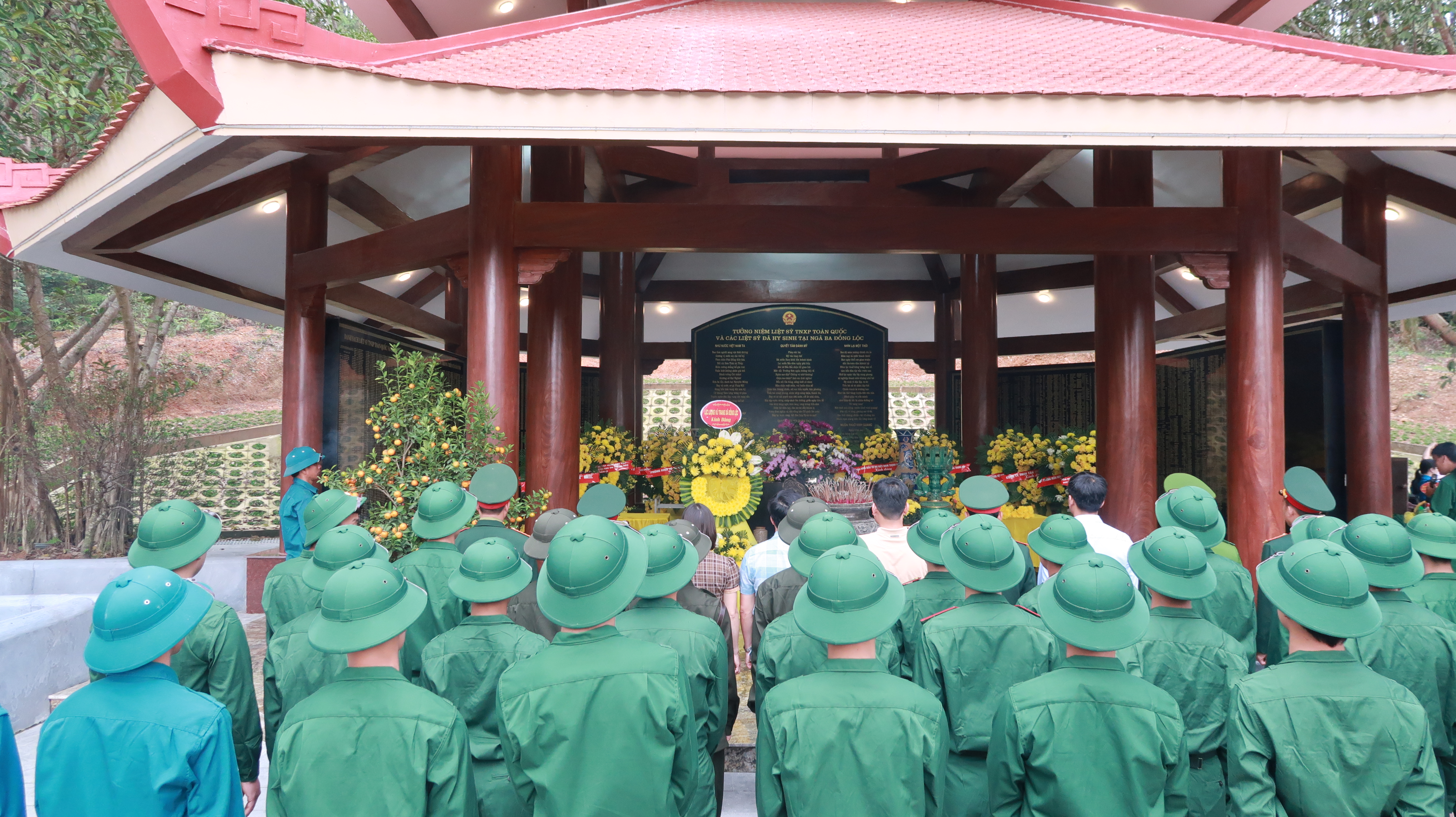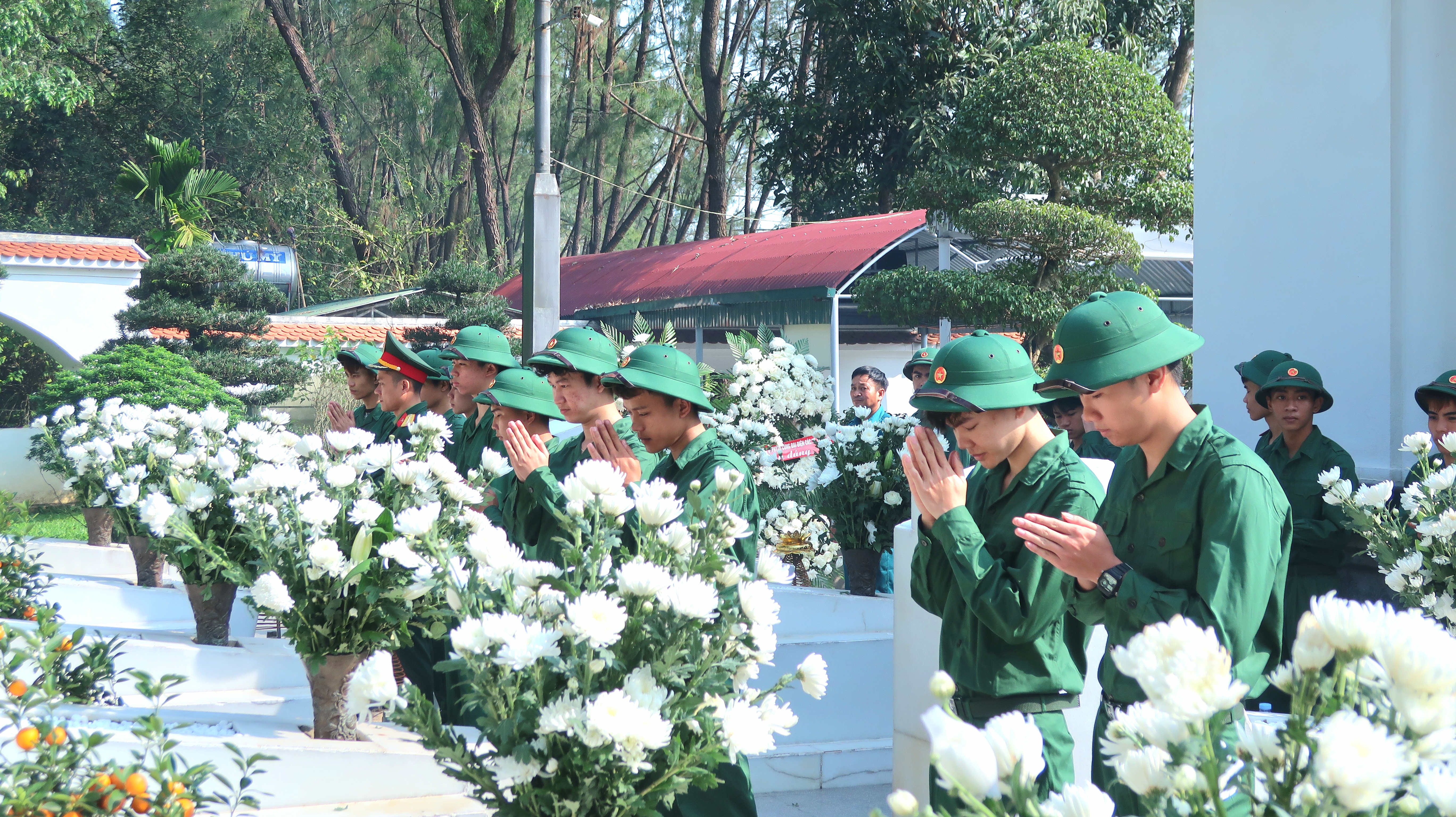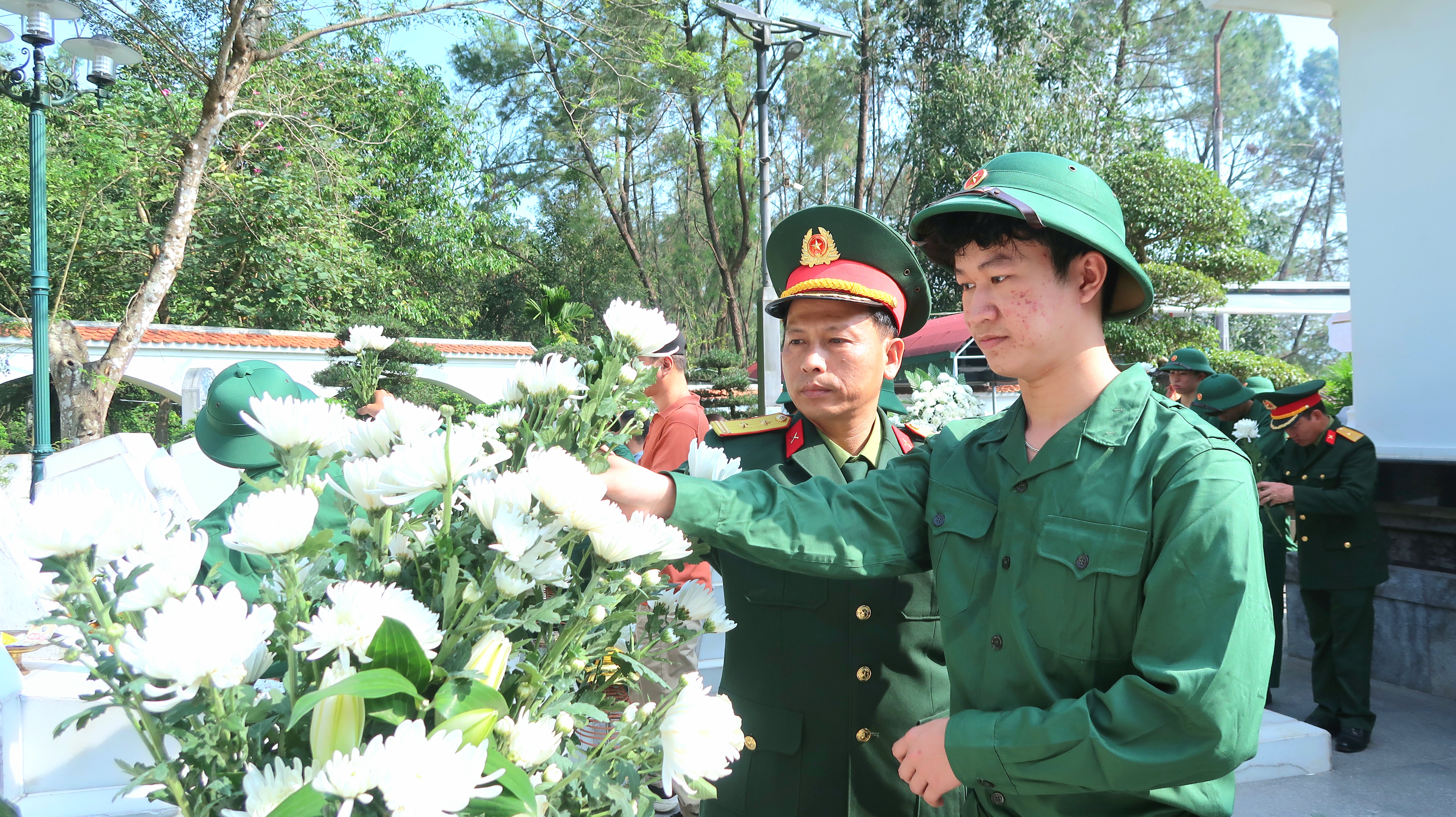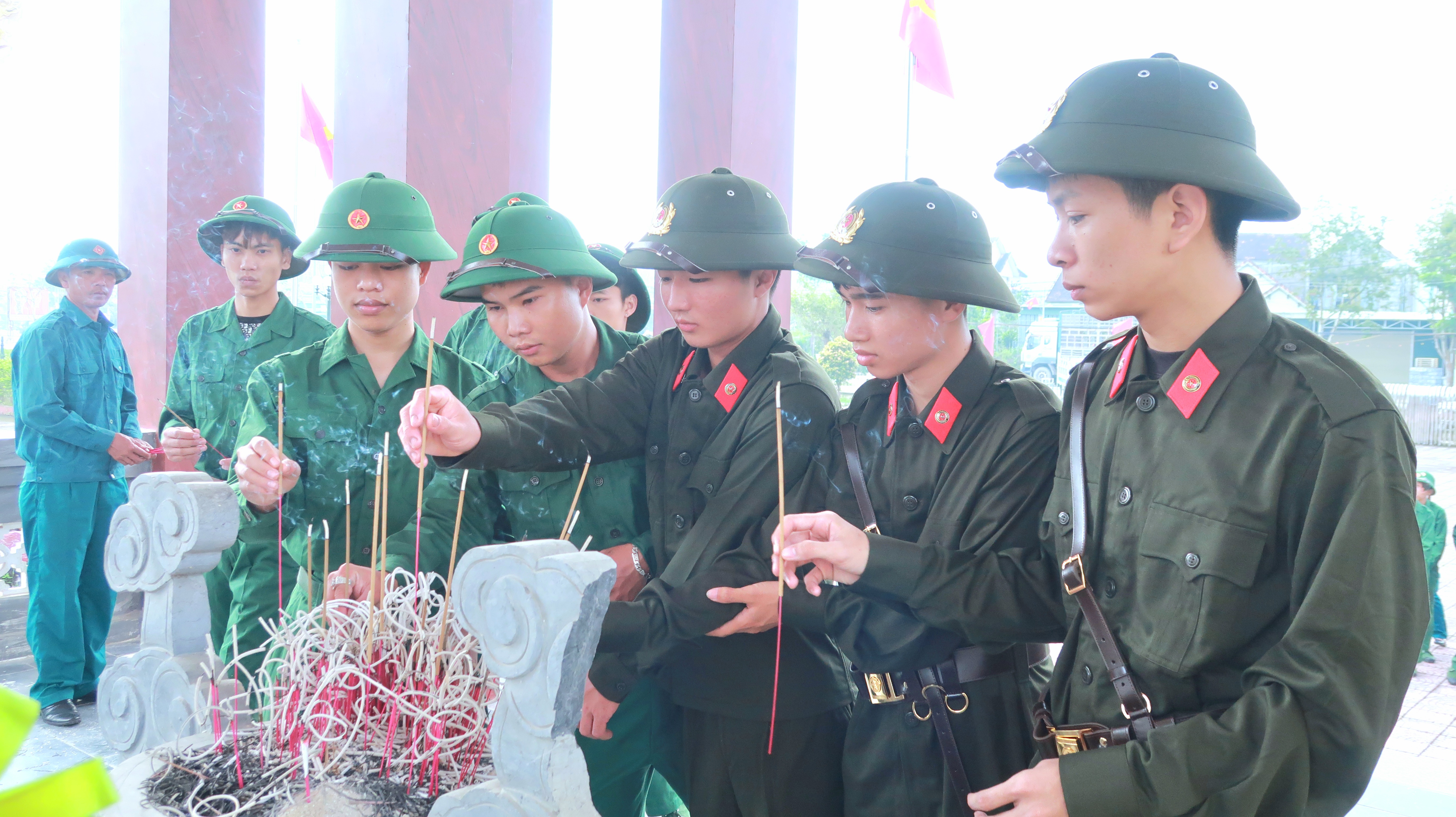 Trong không khí trang nghiêm, các đại biểu cùng các thanh niên chuẩn bị lên đường làm nhiệm vụ bảo vệ Tổ quốc đã dâng hoa, dâng hương và bày tỏ lòng tưởng nhớ, tri ân sâu sắc đối với các thế hệ cha anh đã không tiếc máu xương vì sự nghiệp giải phóng dân tộc.