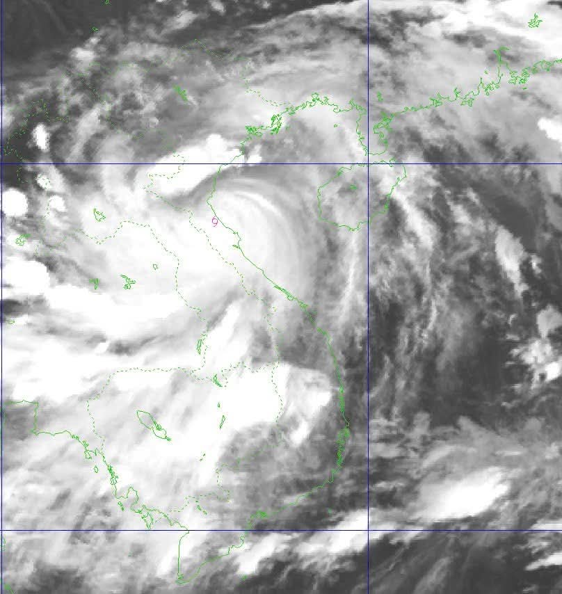 Vị trí tâm bão: Khoảng 18.4 độ Vĩ Bắc; 105.8 độ Kinh Đông, trên đất liền khu vực Hà Tĩnh.