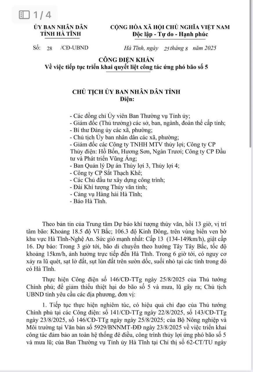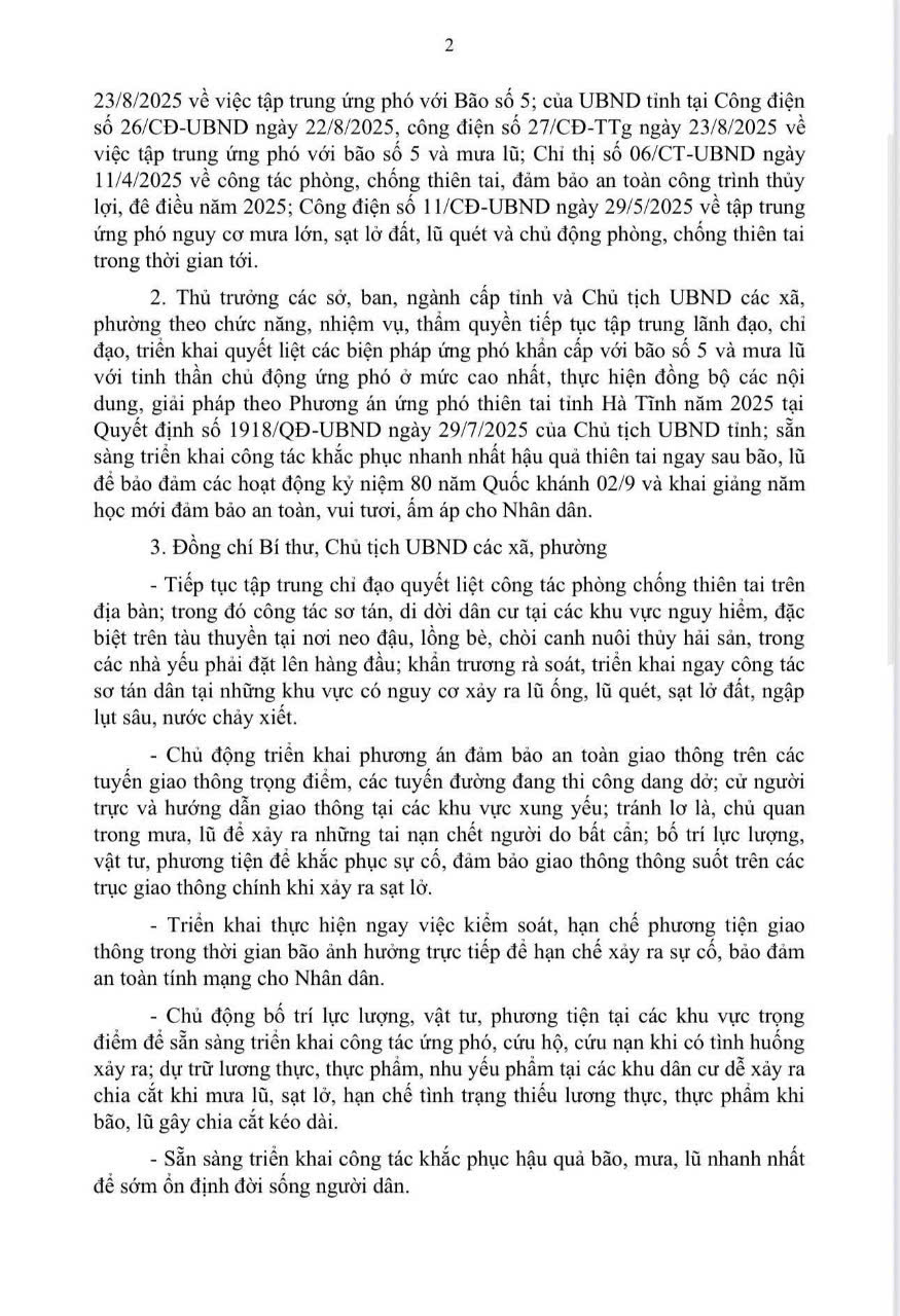 Yêu cầu bà con nhân dân thực hiện đầy đủ, nghiêm túc các nội dung chỉ đạo của UBND tỉnh tại Công điện số 28/CĐ-UBND ngày 25/8/2025.
