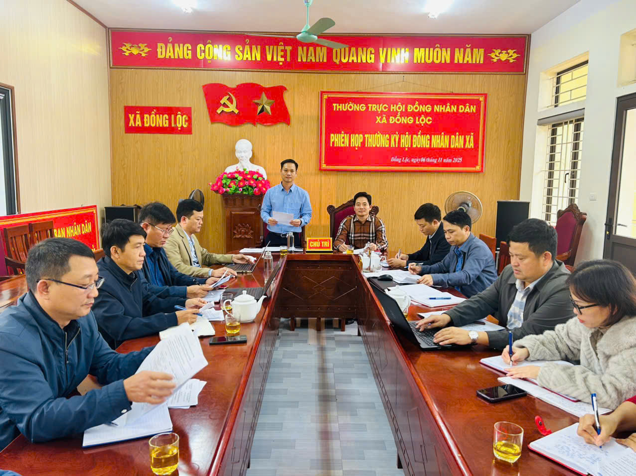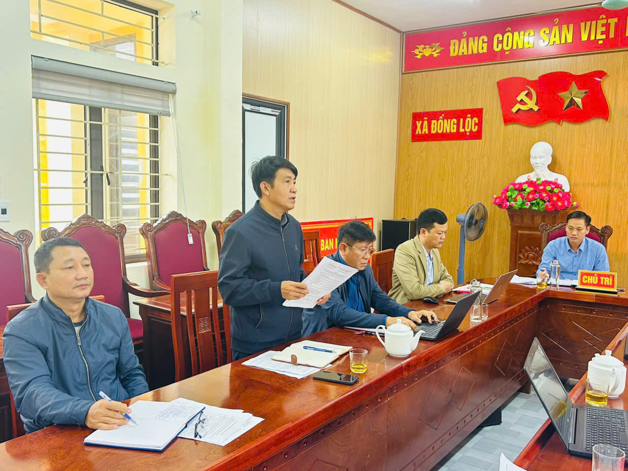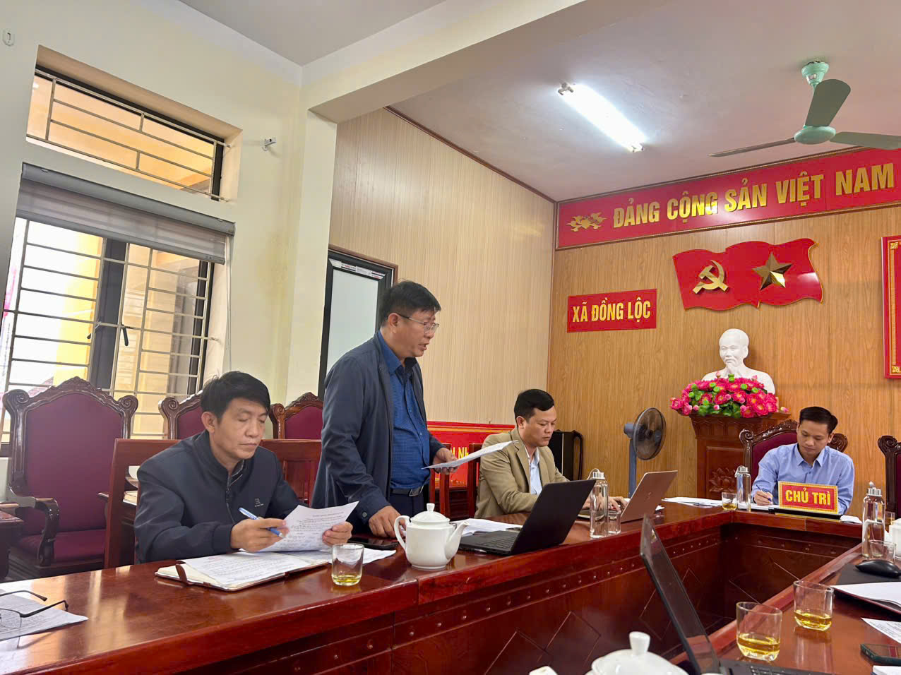 Tham dự cuộc họp có các đồng chí Dương Văn Tuấn - Bí thư Đảng uỷ, Chủ tịch HĐND xã; Bùi Huy Thọ, UVBTV, Phó chủ tịch HĐND xã.