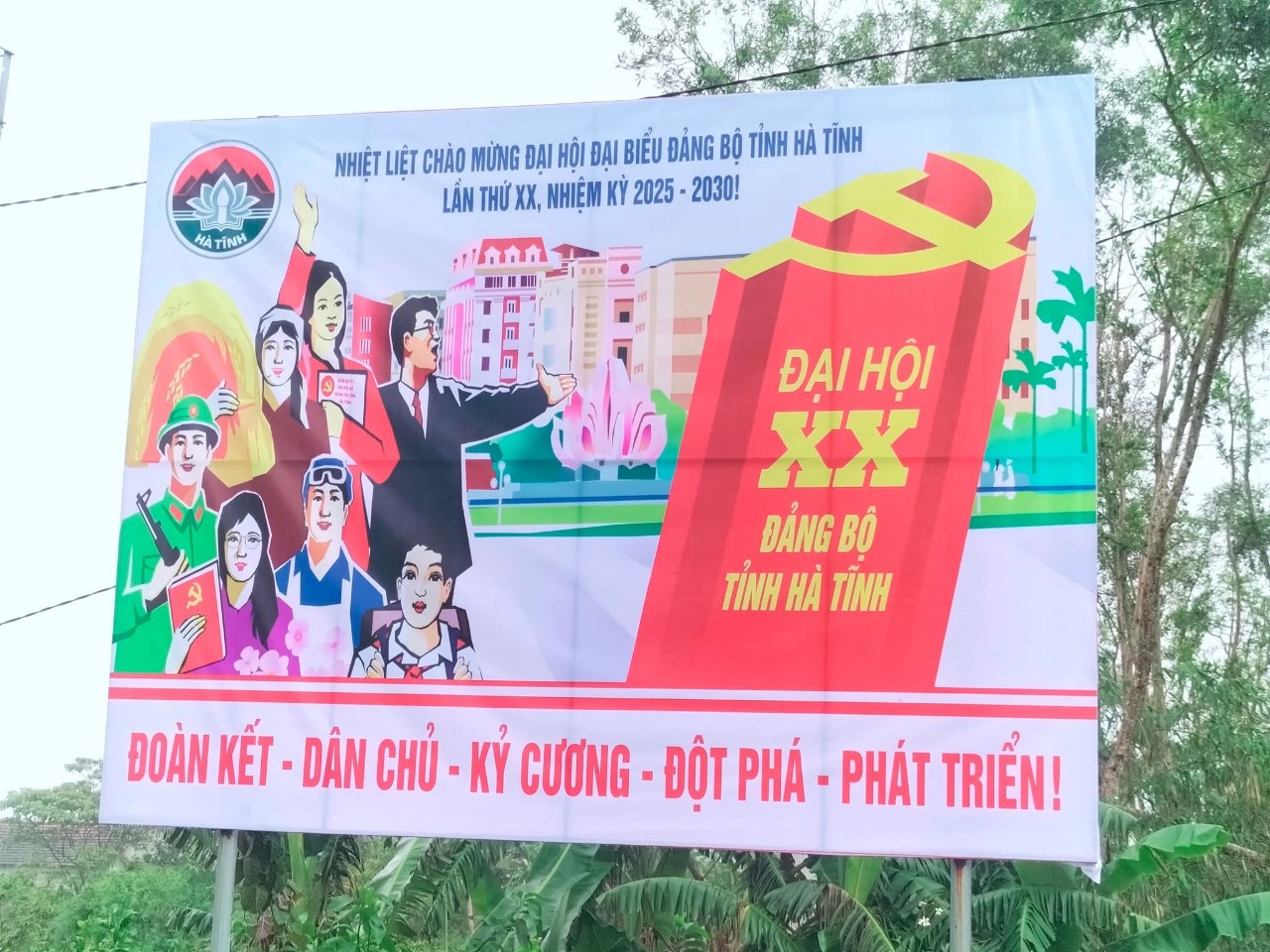 Để chào mừng sự kiện chính trị trọng đại của tỉnh nhà, trong những ngày này trên địa bàn xã Đồng Lộc đã phủ sắc đỏ từ lá cờ Đảng và cờ Tổ quốc, hồng kỳ; rực rỡ sắc màu pano, áp phích, khẩu hiệu,... từ những tuyến đường trục chính trung tâm xã tới các ngõ thôn, đến từng hộ gia đình... với niềm tin và kỳ vọng lớn vào sự thành công của Đại hội Đảng bộ tỉnh lần thứ XX, nhiệm kỳ 2025 - 2030.