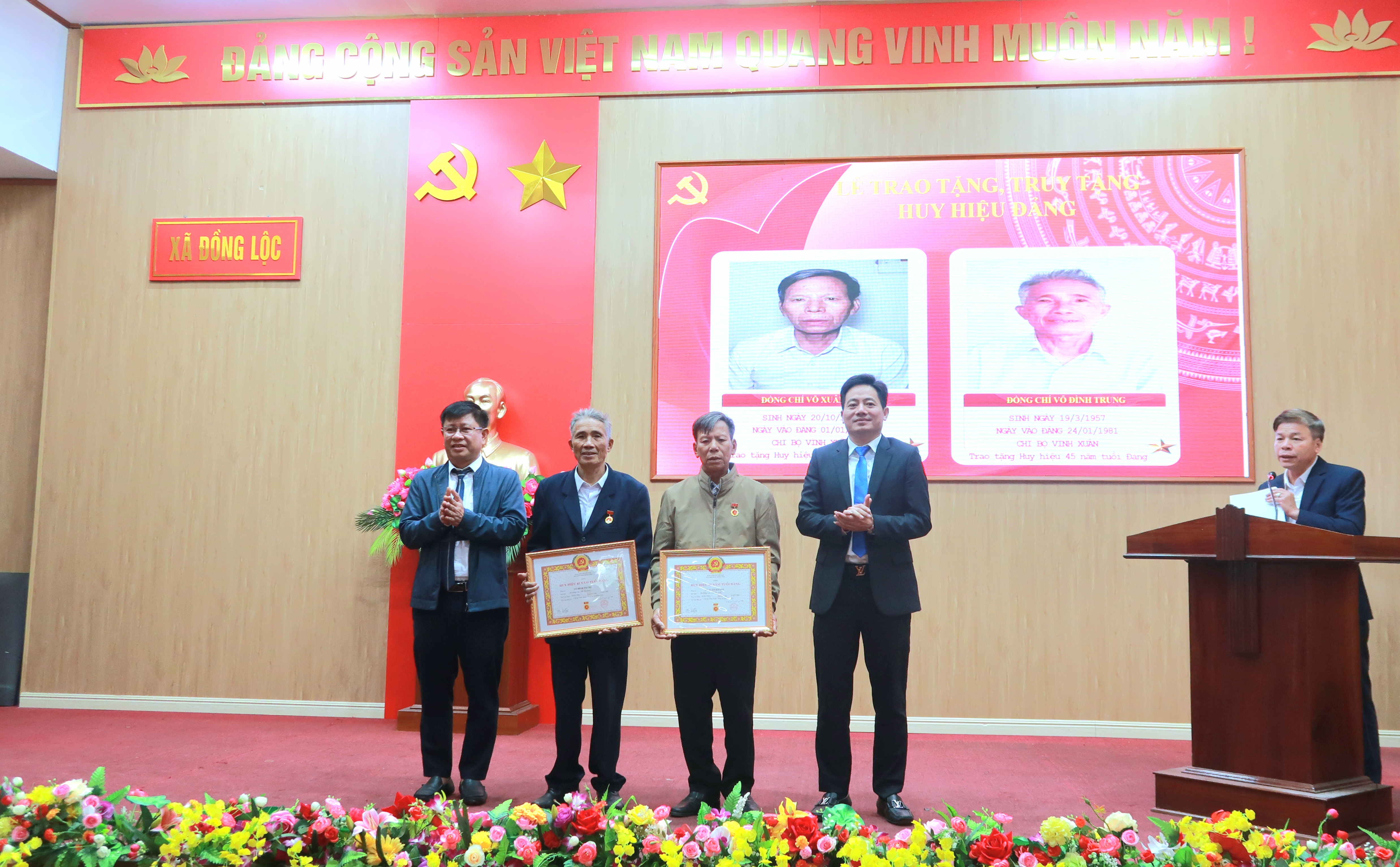 Dịp này, Ban Thường vụ Đảng ủy xã Đồng Lộc trao tặng Huy hiệu Đảng cho 12 đảng viên; trong đó có 1 đảng viên được trao Huy hiệu 65 năm tuổi Đảng, 1 đảng viên được trao Huy hiệu 60 năm tuổi Đảng, 2 đảng viên được trao Huy hiệu 45 năm tuổi Đảng, 7 đảng viên được trao Huy hiệu 40 năm tuổi Đảng và 1 đảng viên được trao Huy hiệu 30 năm tuổi Đảng.